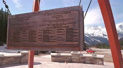 Monument at Rogers Pass BC marking the completion point of the Trans-Canada Highway in 1962.